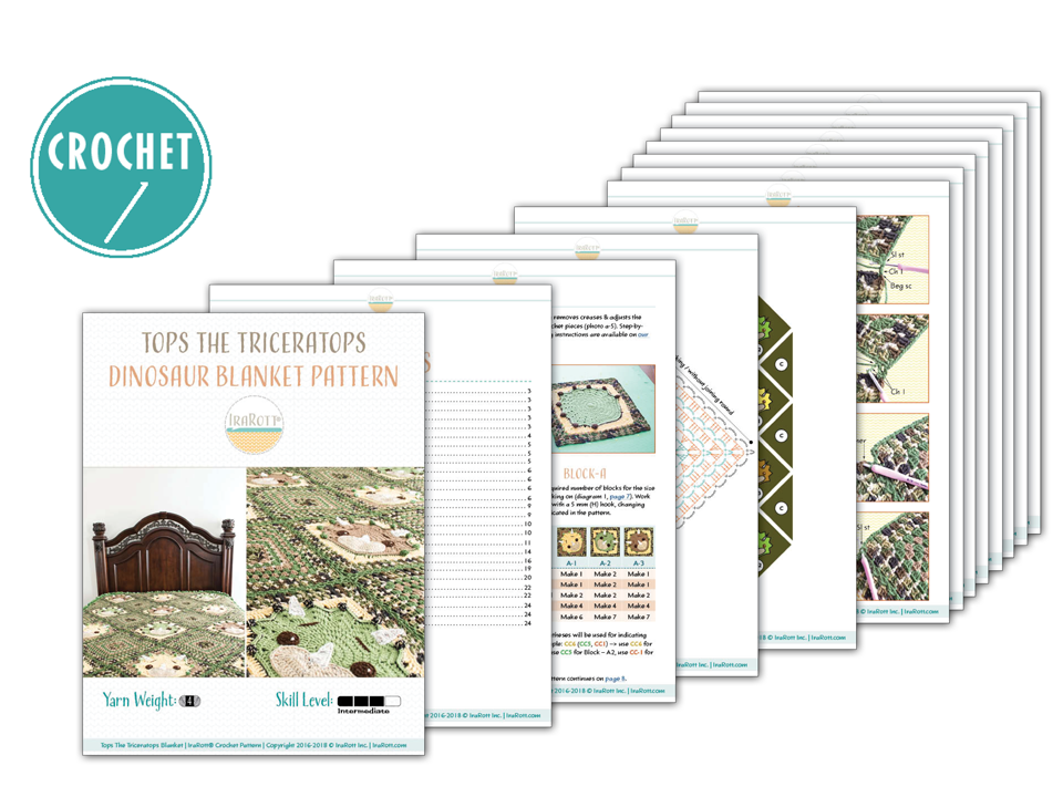 To go to sleep, count dinosaurs…not sheep! These mysterious living creatures inhabited our planet a long time ago, but they are still the most attractive and noble animals loved by everyone. Tops the triceratops blanket pattern is written row-by-row using US crochet terms. It also includes crochet diagrams, photos, and a conversion chart to UK terms.