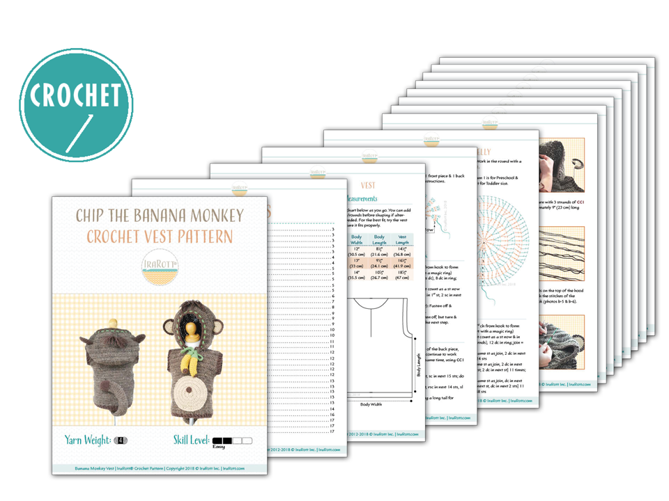 Monkey see monkey do, monkeys like to dress up too. This pattern comes in 3 sizes - for toddlers, preschoolers and kids. It is written row-by-row using US crochet terms, including crochet diagrams, step-by-step photos, and a conversion chart to UK terms.