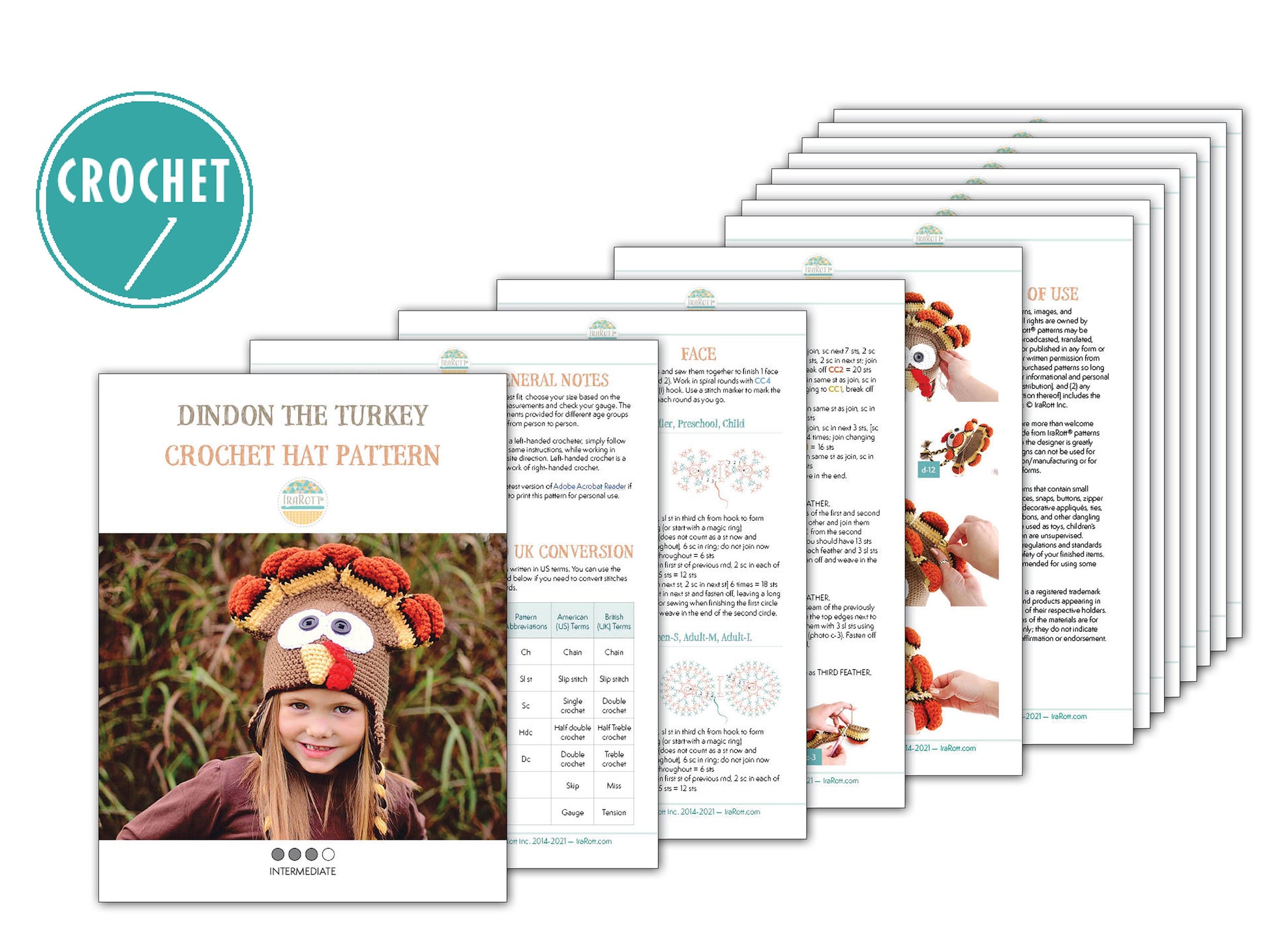 Who knew that gobble-gobble meant Happy Thanksgiving? DinDon the turkey hat pattern comes in 8 sizes for your family to have a memorable Thanksgiving or just wear it on a cold winter’s day. This pattern is written row-by-row using US crochet terms. It also includes crochet diagrams, step-by-step photos, and a conversion chart to UK terms.