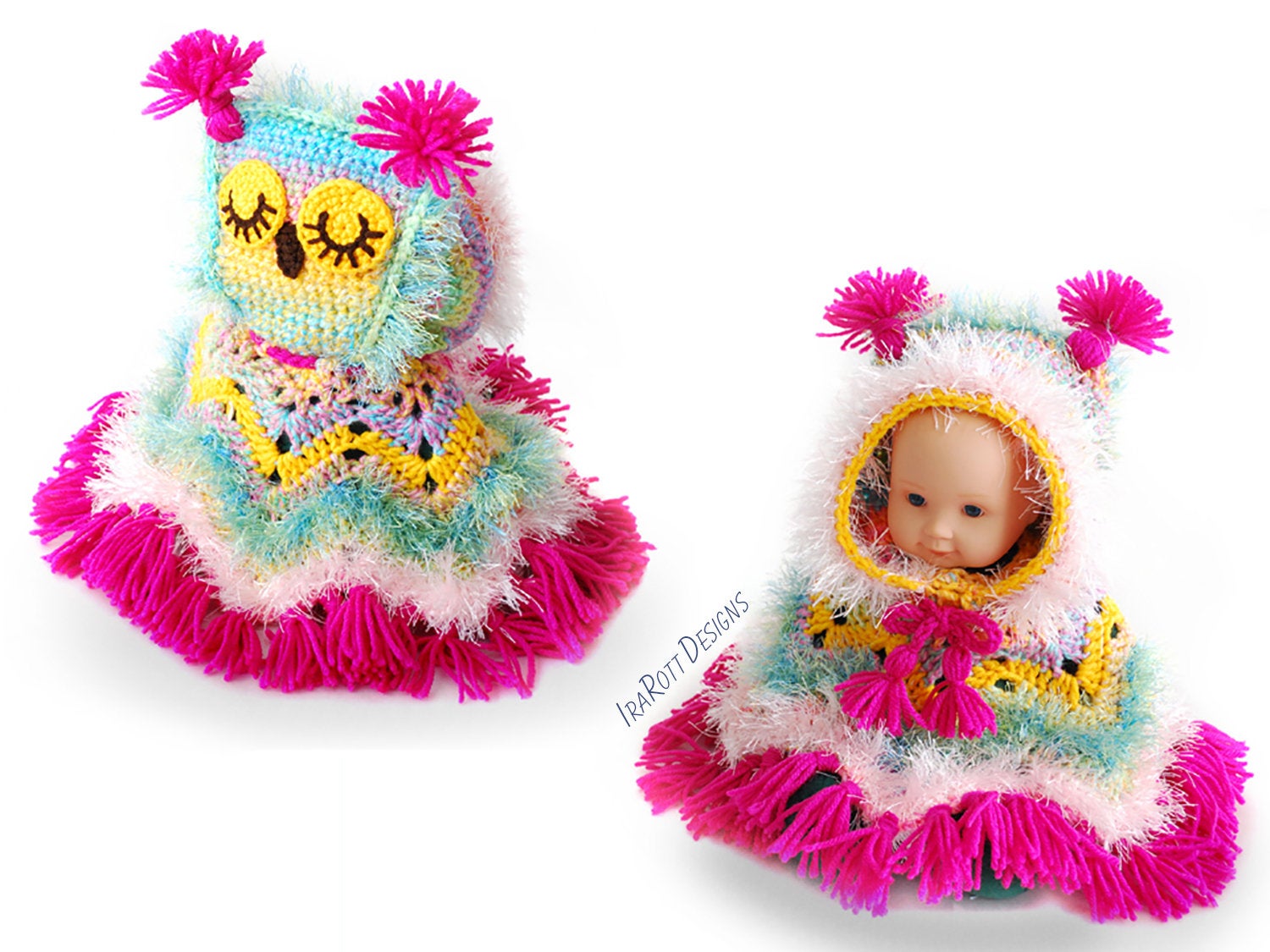Fiesta Owl Doll Poncho with Hood Crochet Pattern