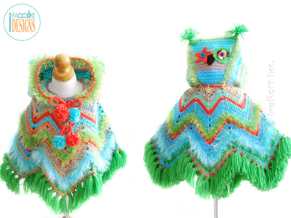 Fiesta Owl Poncho with Hood Crochet Pattern
