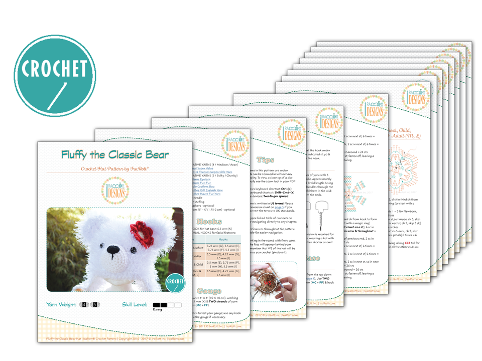 Fluffy the Classic Bear is so sweet, soft, and warm...it'll be a bear hat that's beloved forevermore! This pattern comes in 9 size ranging from newborns to adults, so the whole bear family will enjoy. It is written row-by-row using US crochet terms, along with crochet diagrams, step-by-step photos, and a conversion chart to UK terms.