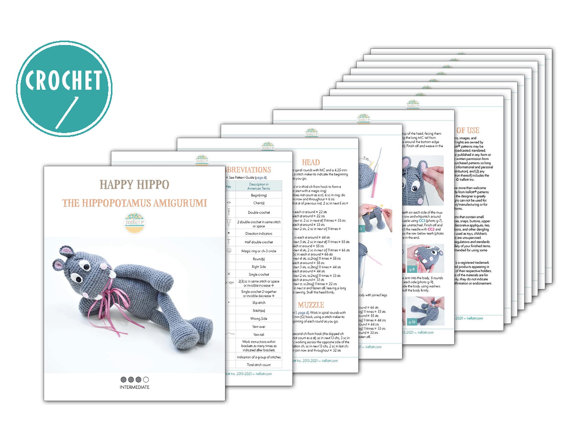 Nothing can beat a hippo-hug from a good friend - Happy Hippo The Hippopotamus, your very own Huggopotamus. This pattern is written row-by-row using US crochet terms. It also includes crochet diagrams, step-by-step photos, and a conversion chart to UK terms.