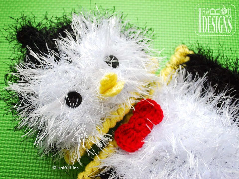 This adorable furry penguin baby set features Lion Brand Fun Fur yarn and Vanna’s Choice medium weight yarn, or you can use any similar eyelash yarn with a medium wight acrylic yarn. This pattern is written row-by-row using US crochet terms, along with crochet diagrams, step-by-step photos, and a conversion chart to UK terms.