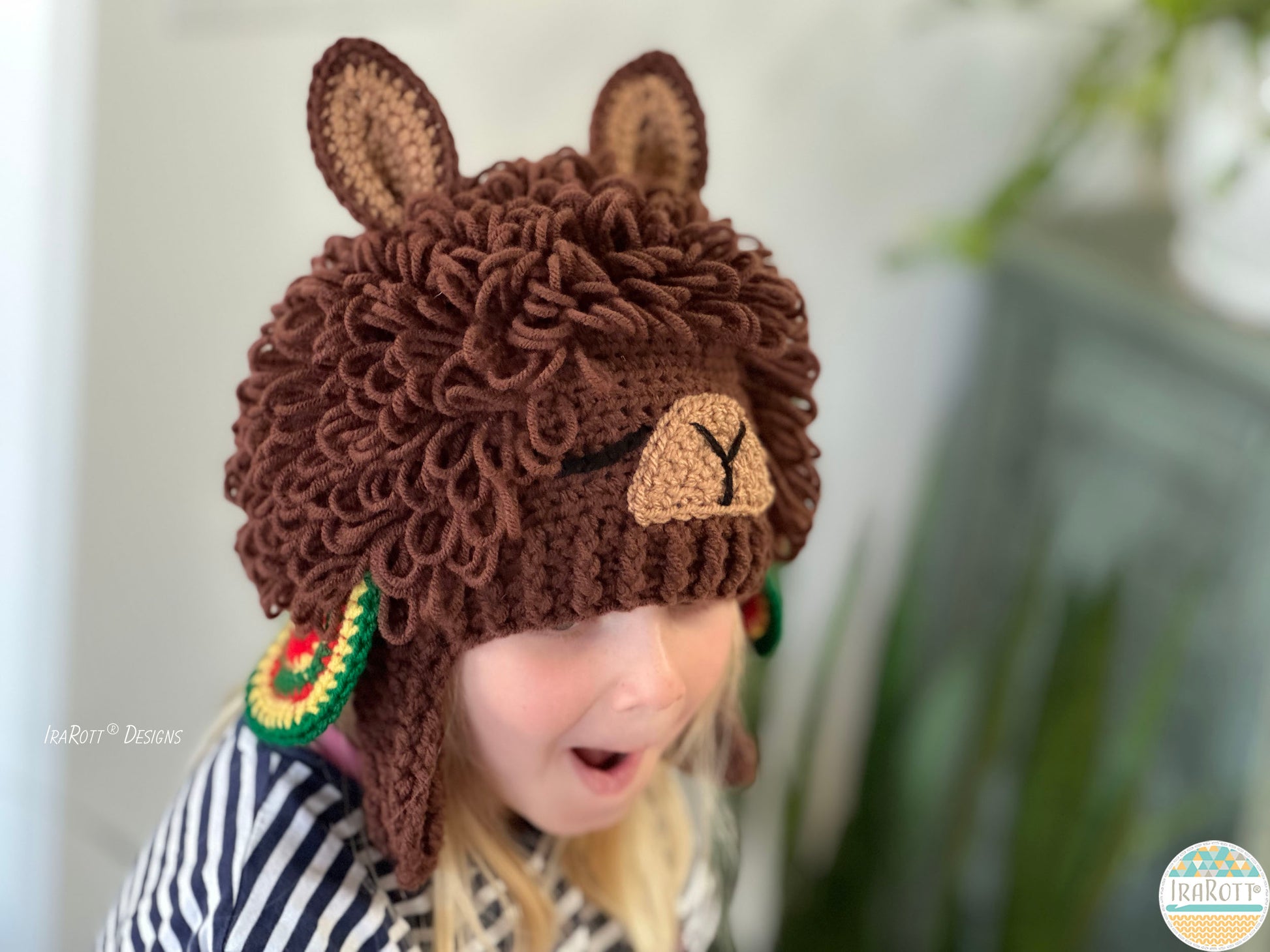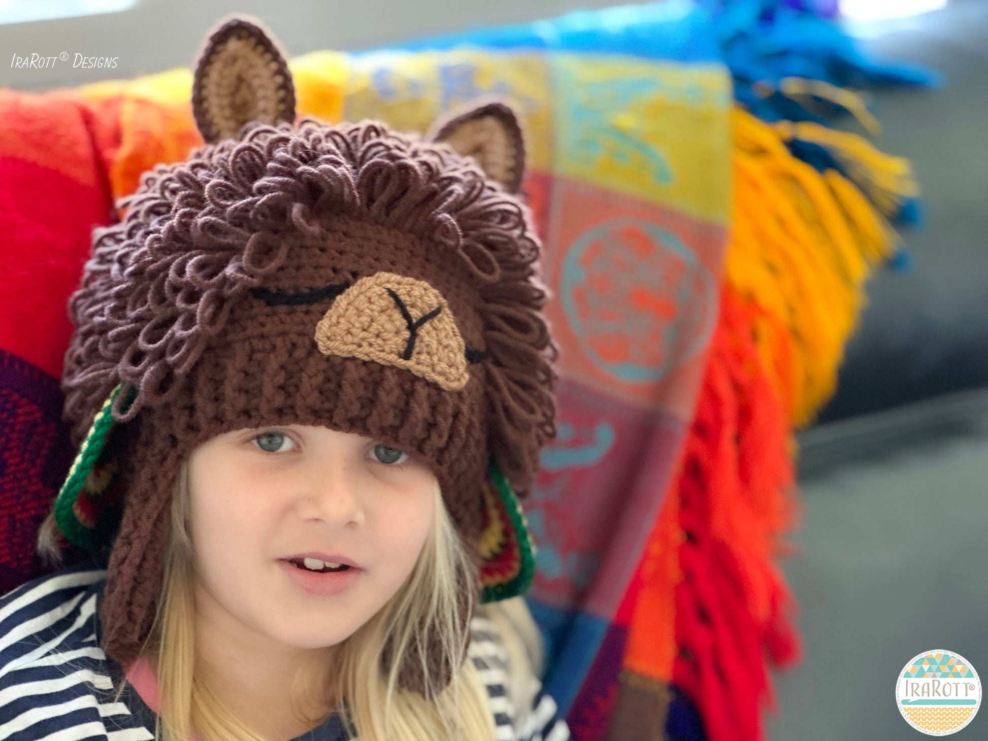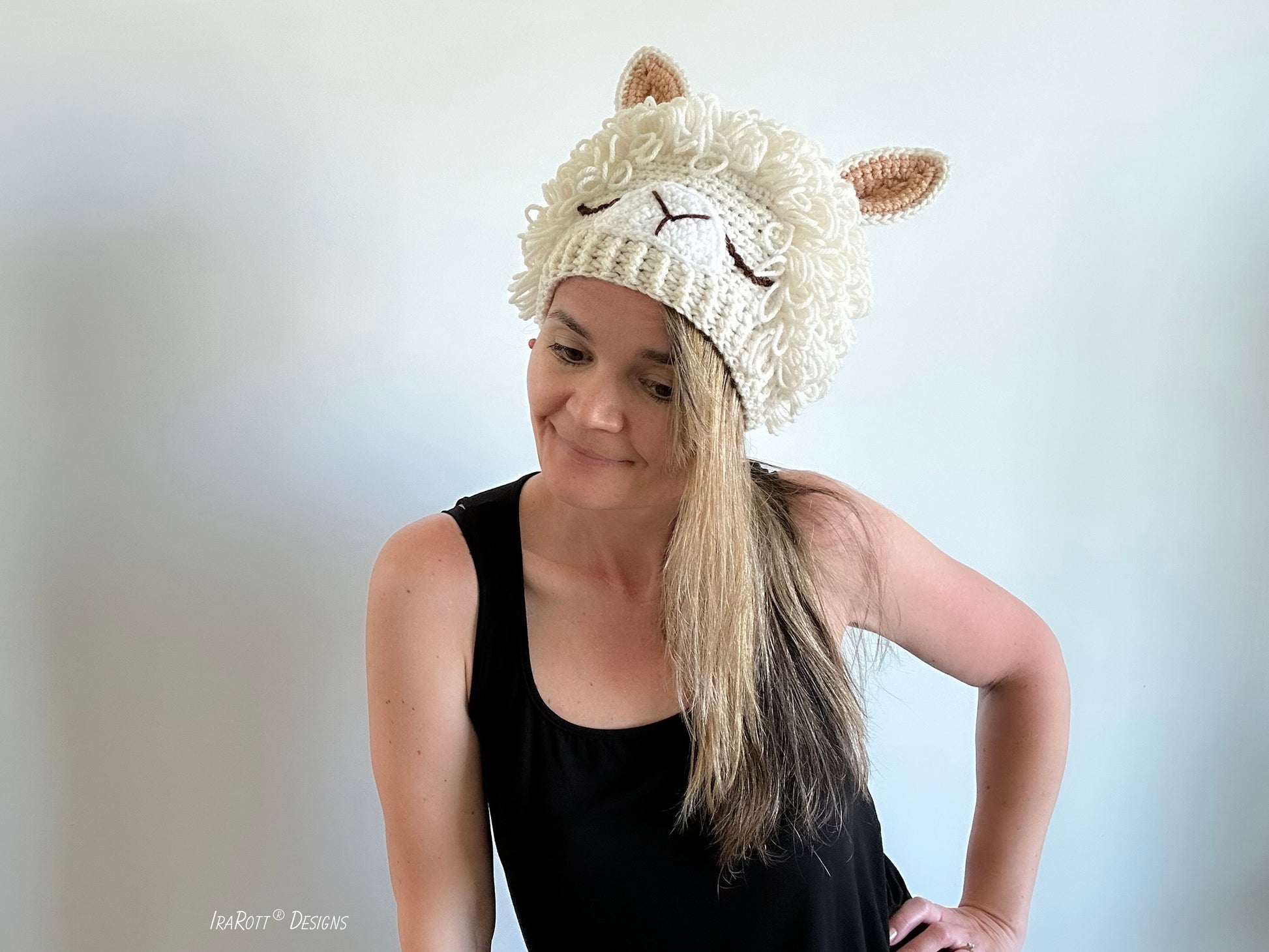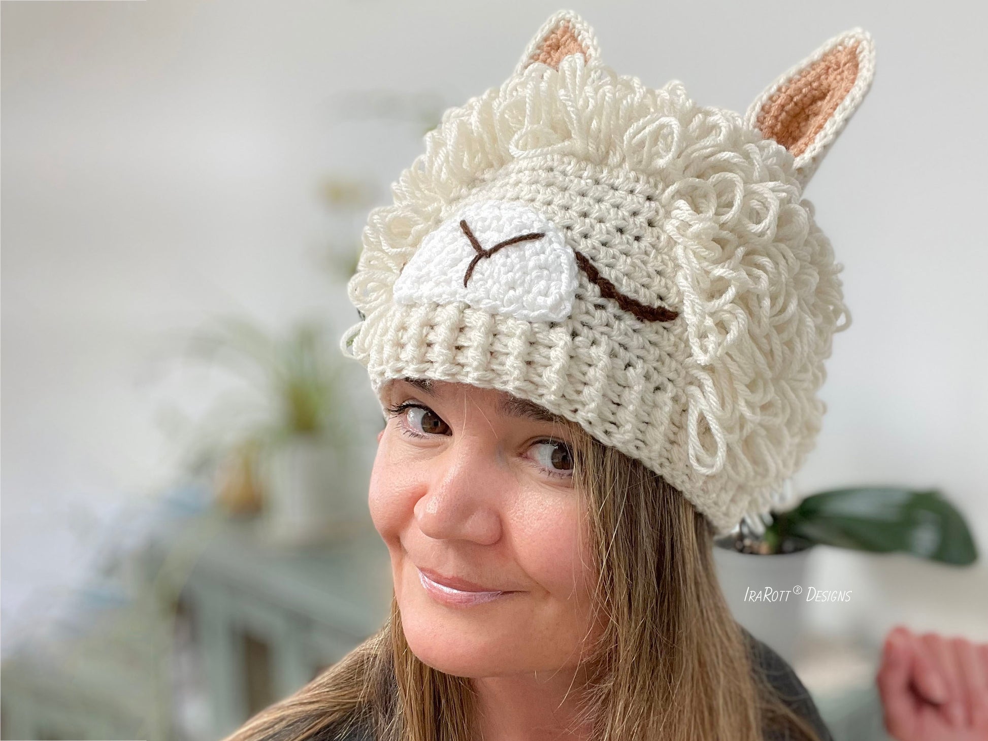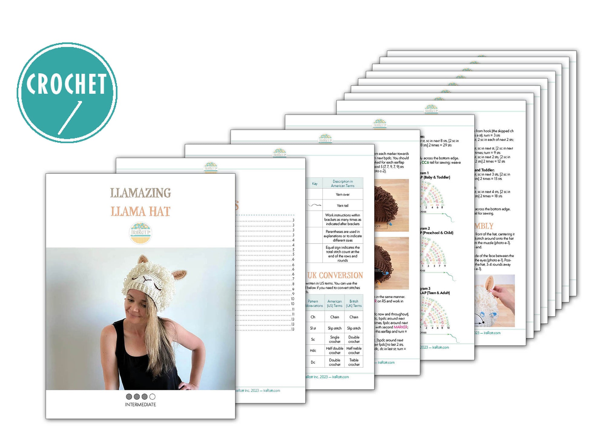 No prob-llama if you feel like a lama glama, this hat will surely make you smile!! You can finish it as a beanie or add earflaps and side blankets with stripes, using neutral colors or even brights. There is no drama when it comes to choosing yarn for your llama, as it will look llamazing in any color. This pattern comes in 6 sizes for crias, machos, and hembras…so your entire herd’s ears will perk up. The instructions are written row-by-row in American crochet terms, along with crochet diagrams, step-by-step photos, and a conversion chart to UK terms.