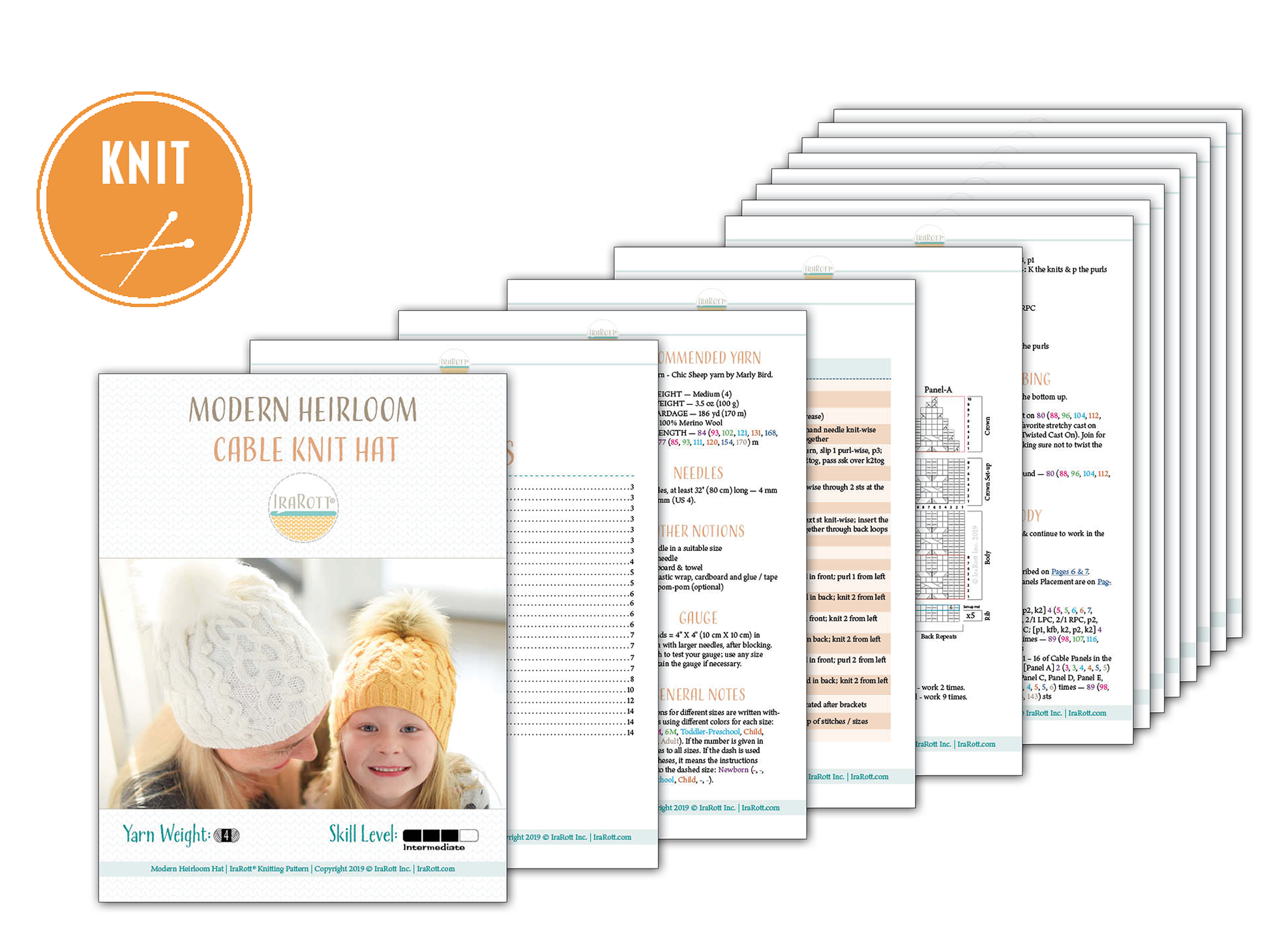 This beautiful hat strikes a balance between timeless knit cables and modern design. It will add a special flair to your wardrobe when the temperature drops. There are 7 sizes in the pattern, so you can keep your entire fam toasty and comfy too! The pattern includes row-by-row instructions, abbreviations, special stitches, techniques, knitting charts, and photos.